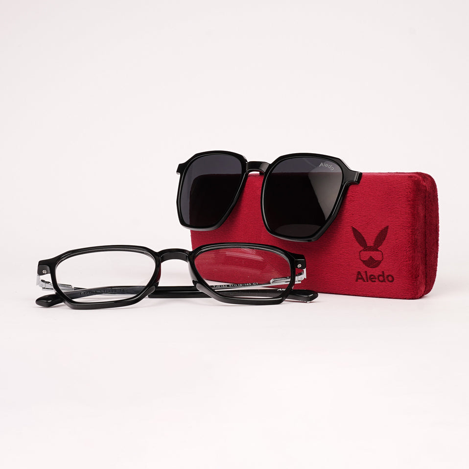 Black Hexa TR90 Eyeglasses with Extra Clip-On